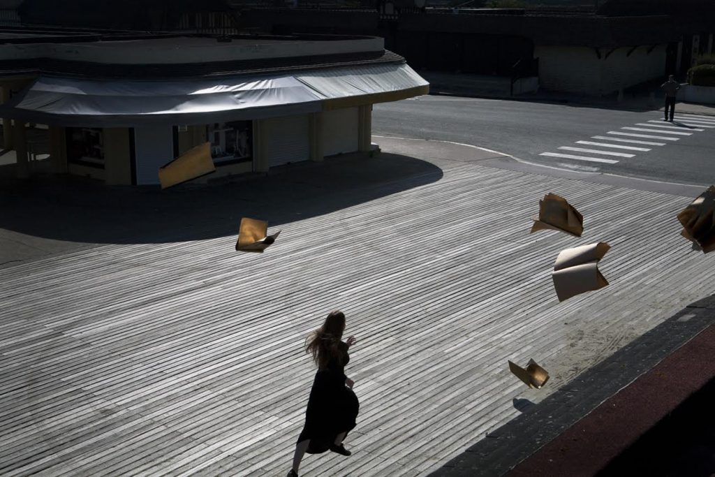 Elle fait des photos qui convoque indifféremment les héros grecs ou la Palme d’or 1966. Bérénice à la chevelure d’or et une femme courant sur planches de Deauville font partie de la série Le Ciel commence ici. Elle nous en parle avec ferveur.