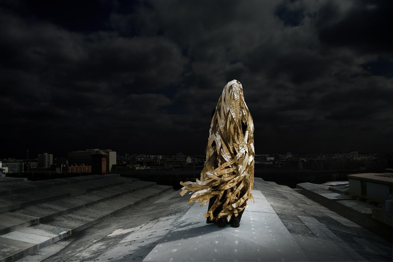 Corinne Mercadier – La Chevelure de Bérénice ! Elle a été prise sur le toit de l’Observatoire de Paris. Et ce que j’aime particulièrement, c’est le contraste entre le désordre du costume et la rigueur du lieu : les marches très géométriques, comme de petites lumières alignées à ses pieds. Le tout sous un ciel très tourmenté avec au fond la ville… Et puis, j’aime beaucoup Bérénice, qui est d’abord un personnage de légende. Son mari Ptolémée, roi d’Égypte, et elle étaient très amoureux. Lorsqu’il a dû partir à la guerre, elle a promis à Aphrodite de sacrifier sa splendide chevelure s’il revenait vivant, et elle l’a fait. La chevelure ayant disparu, l’astronome de la cour a prétendu que la déesse l’avait emportée, d’où la constellation de la Chevelure de Bérénice… ce qui me va !